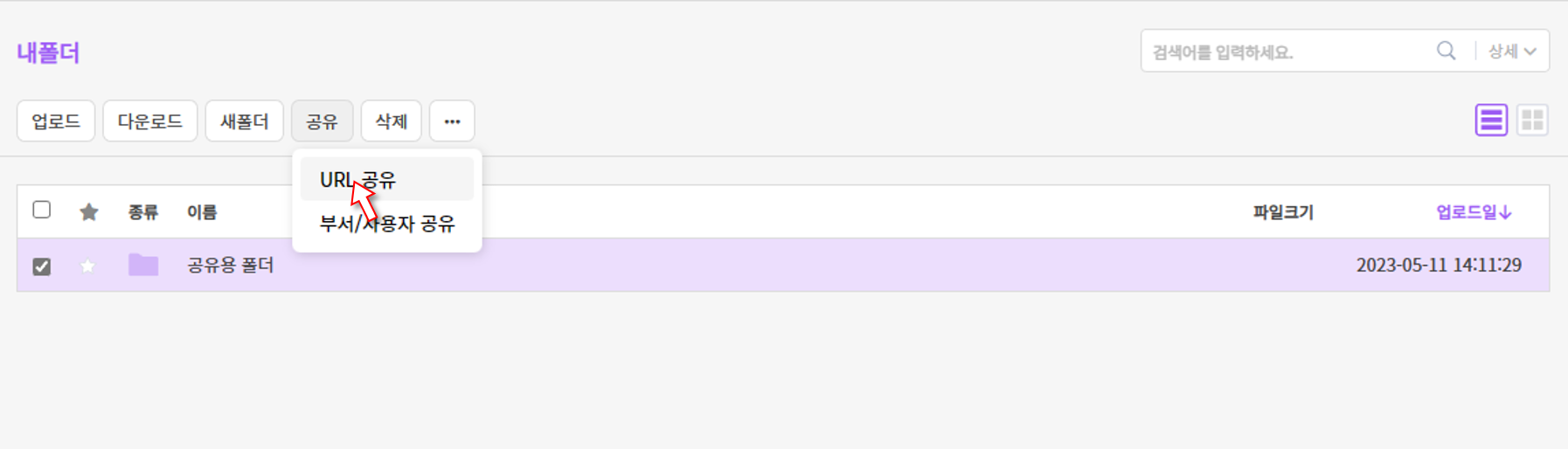 폴더 옆 URL공유 버튼이 생성된 모습을 확인할 수 있습니다.