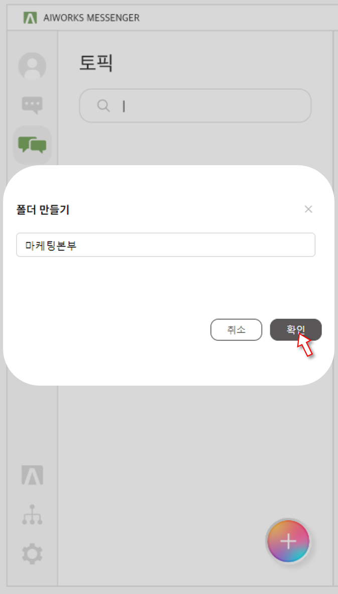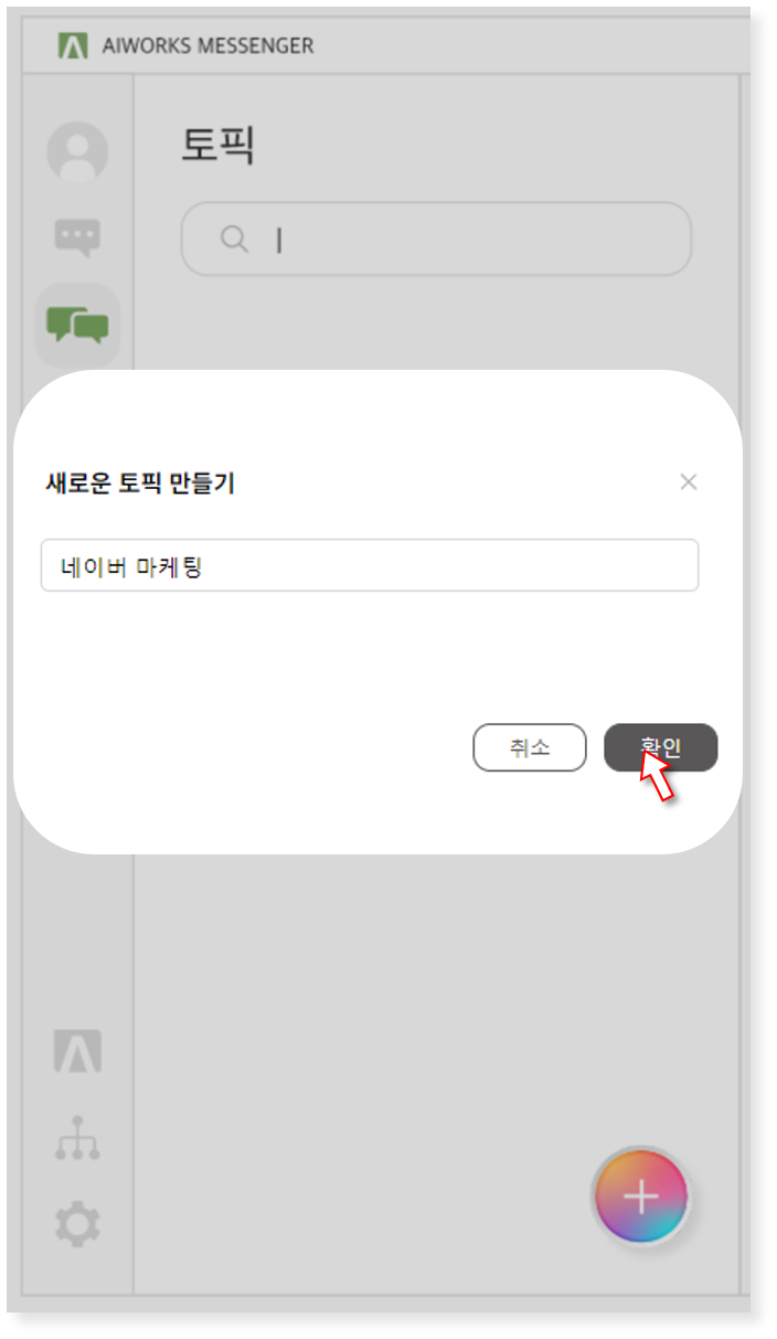 토픽방 이름을 설정하고 ‘확인’ 버튼을 클릭합니다.